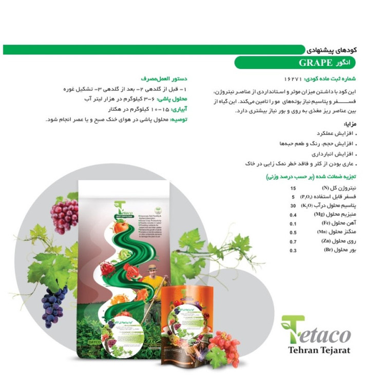 ### **ویژگیهای کود درخت انگور تتاکو مدل VIGOROUS**