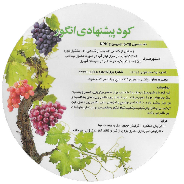 این کود با فرمولاسیون پیشرفته و ترکیبات غنی، به طور خاص برای نیازهای درختان انگور طراحی شده است. برخی از ویژگیهای برجسته این محصول عبارتند از: