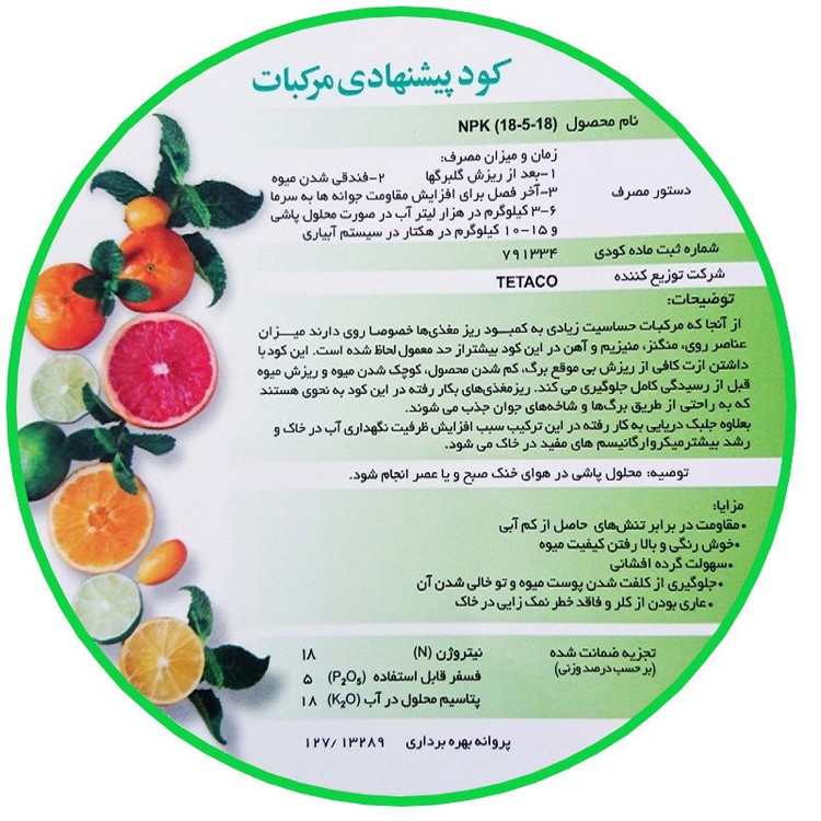 کود NPK یک نوع کود شیمیایی است که شامل سه عنصر اصلی نیتروژن(N) ، فسفر(P) و پتاسیم(K) میباشد و به عنوان یکی از کودهای مهم برای پرورش گیاهان به کار میرود. برای درختان مرکبات، نیز میتوان از کود NPK استفاده کرد. درختان مرکبات مانند پرتقال، لیمو، نارنگی و ... به عنوان گیاهان خوشهای، برای رشد و توسعه به مقدار زیادی از عناصر غذایی نیاز دارند. برای تامین این نیازهای غذایی، استفاده از کود NPK مناسب است. این کود میتواند به خوبی به درختان مرکبات کمک کند تا رشد سریعتری داشته باشند، مقاومت بیشتری در برابر بیماریها و شرایط آب و هوایی نامساعد داشته باشند، و در نهایت محصولات باکیفیتتری تولید کنند. نحوه استفاده از کود NPK برای درختان مرکبات به شکل زیر است: - در بهار، بعد از شروع رشد جدید درخت، باید از کود حاوی نیتروژن بیشتر استفاده کنید. - در تابستان، بعد از گذشت یک ماه از استفاده از کود حاوی نیتروژن، باید به کود حاوی فسفر و پتاسیم تغییر دهید . - در پاییز، برای تقویت رشد ریشهها، میتوان بهجای کود حاوی نیتروژن، از کود حاوی فسفر و پتاسیم بیشتری استفاده کرد. نکته مهمی که باید در نظر داشت، این است که میزان استفاده از کود NPK باید با توجه به نیازهای خاص هر درخت مرکبات و شرایط آب و هوایی منطقه، تنظیم شود. همچنین، باید از این کود با دقت و با رعایت دستورالعملهای استفاده، استفاده کرد تا احتمال آلودگی خاک و محصولات به حداقل رسد.