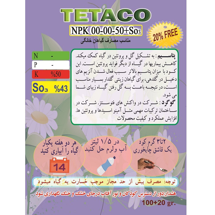 کود سولفات پتاسیم تتاکو مناسب گلدان باغچه وزن 120گرم بسته 5 عددی