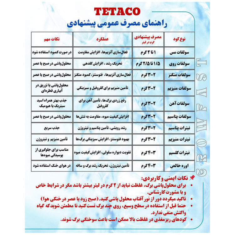 برای بهرهمندی از مزایای کامل این کود، رعایت دستورالعملهای مصرف ضروری است: