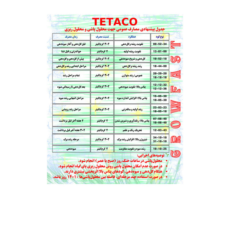 بدون بو , تهیه شده از مواد معدنی , تهیه شده از مواد ارگانیک , تهیه شده از مواد شیمیایی , عملکرد اصلی: تغذیه , عملکرد اصلی: گلدهی , لزوم استفاده بصورت محلول