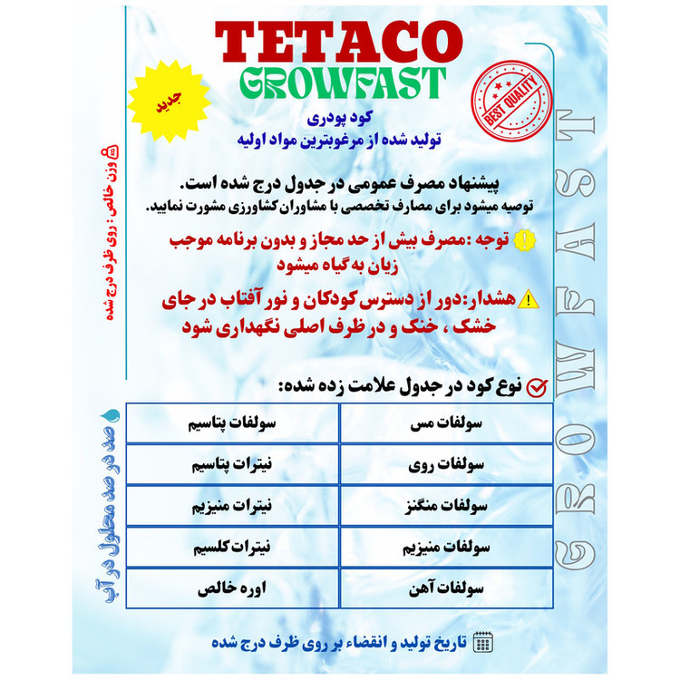 بدون بو , تهیه شده از مواد معدنی , تهیه شده از مواد ارگانیک , عملکرد اصلی: تغذیه , عملکرد اصلی: گلدهی , لزوم استفاده بصورت محلول