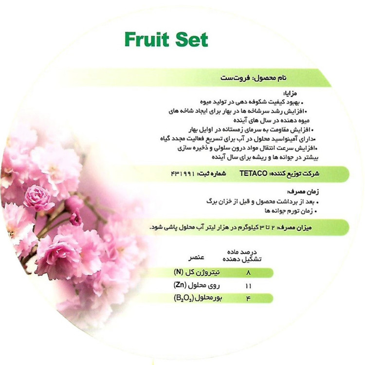 کود فروت ست تتاکو، افزایش باردهی محصولات، تقویت گلدهی گیاهان، کیفیت محصولات کشاورزی، محلولپاشی کود، تغذیه گیاهان، مقاومت گیاهان در برابر آفات، عناصر مغذی گیاهان، کود باغی، کود زراعی
