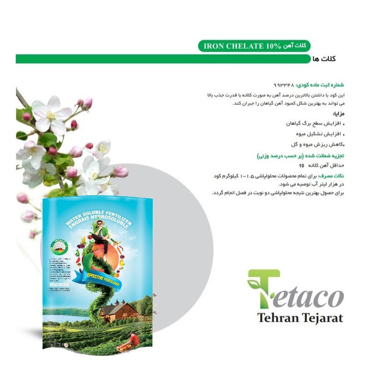 ویژگیهای کود کلات آهن 10% تتاکو مدل VIGOROUS