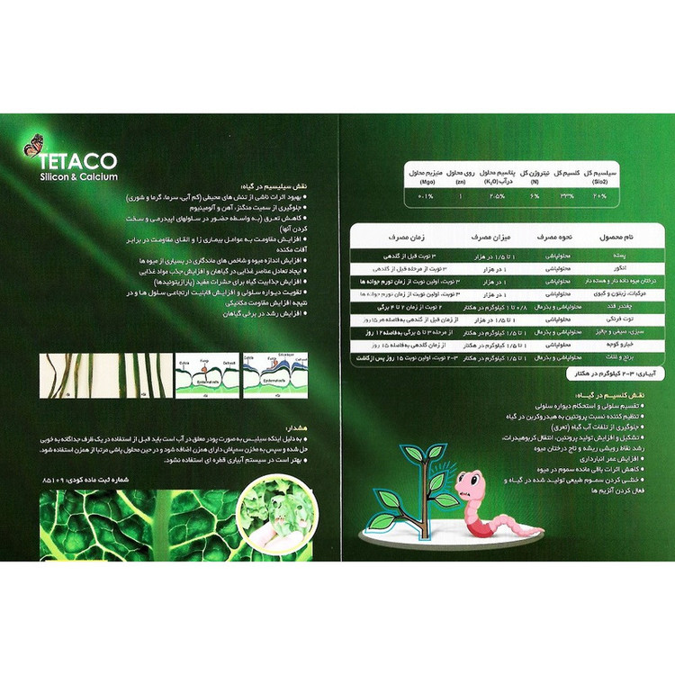 کود سیلیس کلسیم (Silicon Calcium Fertilizer)، کودی است که شامل ترکیبی از سیلیس (Silicon) و کلسیم (Calcium) میباشد. این کود به عنوان یک کود معدنی، برای بهبود کیفیت و عملکرد گیاهان استفاده میشود. سیلیس کلسیم میتواند به عنوان یک کود پایه برای تقویت ساختار خاک و بهبود برخی ویژگیهای فیزیکی و شیمیایی خاک مورد استفاده قرار گیرد. همچنین، این کود میتواند به عنوان یک عامل محرک رشد گیاهان عمل کرده و بهبود خصوصیات فیزیولوژیکی گیاهان را تسریع کند. با افزودن سیلیس و کلسیم به خاک، مقاومت گیاهان در برابر شرایط نامساعد محیطی مانند خشکی، آب و هوای سرد و گرم، آفات و بیماریها افزایش مییابد. همچنین، استفاده از این کود میتواند بهبود عملکرد گیاه در شرایط تنشی مانند شوری و کمبود آب را فراهم کند. بهطور کلی، استفاده از کود سیلیس کلسیم به عنوان یک کود محرک رشد و بهبود دهنده خاک و گیاهان، میتواند بهبود عملکرد و عمر مفید گیاهان را بهبود بخشد.