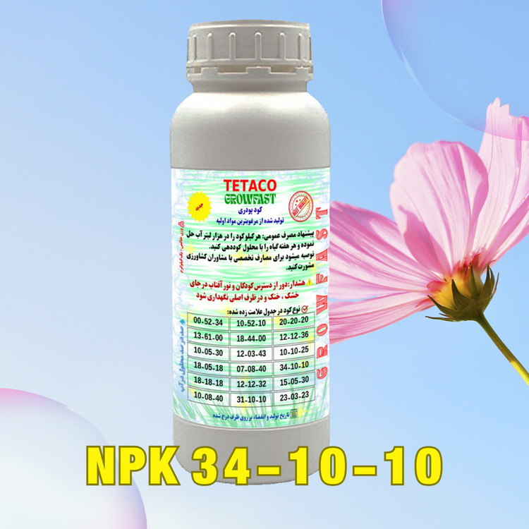 کود NPK 34-10-10+TE شامل نسبتهای مختلف از عناصر غذایی اصلی گیاهان است که شامل نیتروژن (N)، فسفر (P) و پتاسیم (K) است. همچنین این کود شامل عناصر کمیابی همچون روی، منگنز، مس، آهن، بور و مولیبدن است.بنابراین، مزایای استفاده از کود NPK 34-10-10+TE عبارتند از:1. رشد سریع و بهتر گیاهان: نیتروژن به عنوان یکی از عناصر اصلی کود، رشد سریع و بهتر گیاهان را تسریع میکند.2. افزایش عملکرد: استفاده از کود NPK 34-10-10+TE به علت حضور فسفر و پتاسیم میتواند باعث افزایش عملکرد گیاهان شود.3. بهبود کیفیت محصول: استفاده از کود NPK 34-10-10+TE میتواند بهبود کیفیت محصولات گیاهی مانند افزایش اندازه و کیفیت میوهها و سبزیجات را به همراه داشته باشد.4. جلوگیری از بیماریها: حضور عناصر کمیابی در کود NPK 34-10-10+TE ممکن است باعث جلوگیری از بیماریهای گیاهی شود.5. افزایش مقاومت به شرایط نامساعد: استفاده از کود NPK 34-10-10+TE ممکن است باعث افزایش مقاومت گیاهان به شرایط نامساعد مانند خشکی و سرما شود.6. بهبود جذب عناصر غذایی: با حضور عناصر کمیابی در کود NPK 34-10-10+TE، جذب عناصر غذایی توسط گیاهان بهبود مییابد و گیاهان به راحتی میتوانند از این عناصر غذایی استفاده کنند. 7. افزایش تولید بذر: استفاده از کود NPK 34-10-10+TE میتواند باعث افزایش تولید بذر گیاهان شود که این موضوع برای کشاورزان و باغداران بسیار حائز اهمیت است. 8. پایداری زمین: استفاده از کود NPK 34-10-10+TE میتواند باعث پایداری زمین و حفظ کیفیت خاک شود. 9. کاهش هزینههای کوددهی: با استفاده از کود NPK 34-10-10+TE کاهش هزینههای کوددهی و نیاز به استفاده از کودهای دیگر ممکن است باشد. 10. زمان استفاده: کود NPK 34-10-10+TE یک کود شیمیایی است که میتواند در هر زمان از سال استفاده شود، همچنین میتواند برای انواع گیاهان و محصولات کشاورزی استفاده شود.