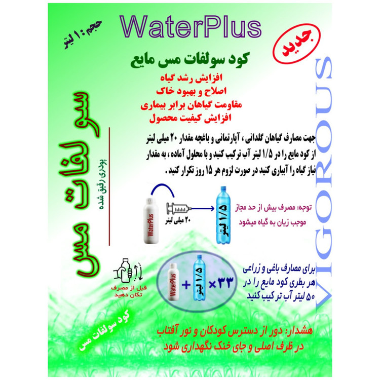 کود مایع سولفات مس واترپلاس مدل VIGOROUS حجم 1 لیتر