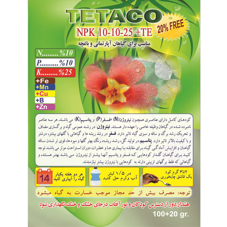 ازت=10% فسفر=10% پتاسیم=25% مکمل ها