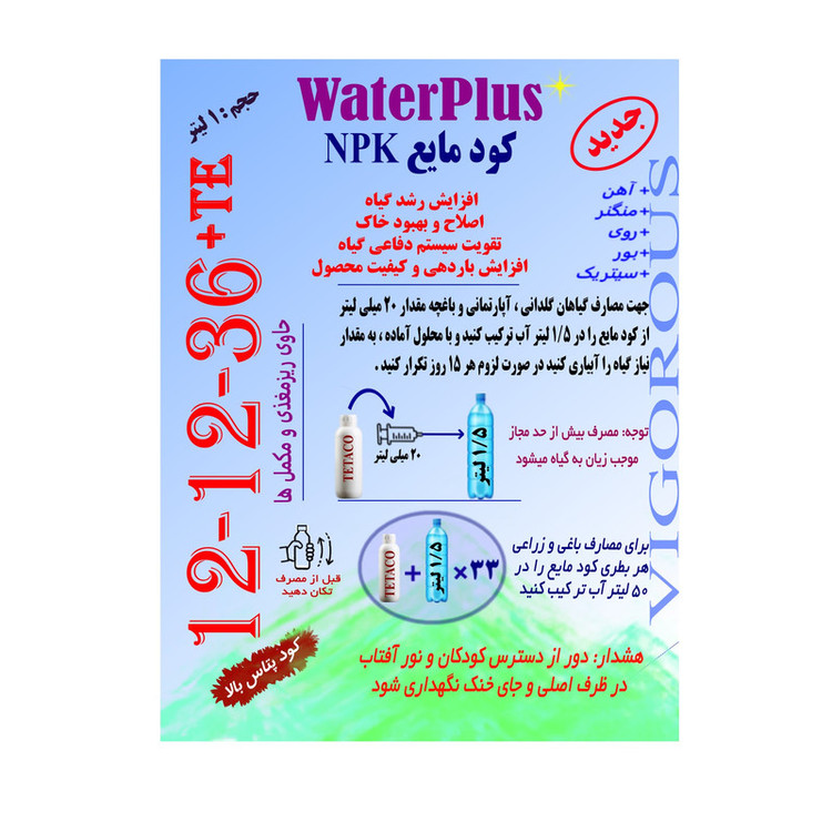 کود مایع NPK 12-12-36+TE واترپلاس مدل VIGOROUS حجم 1 لیتر