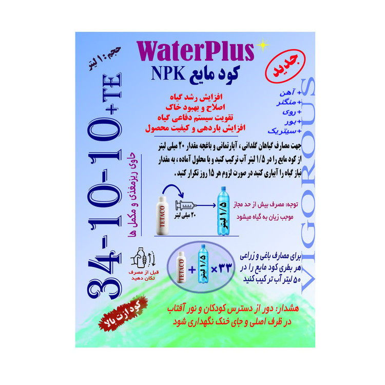 کود مایع NPK 34-10-10+TE واترپلاس مدل VIGOROUS حجم 1 لیتر