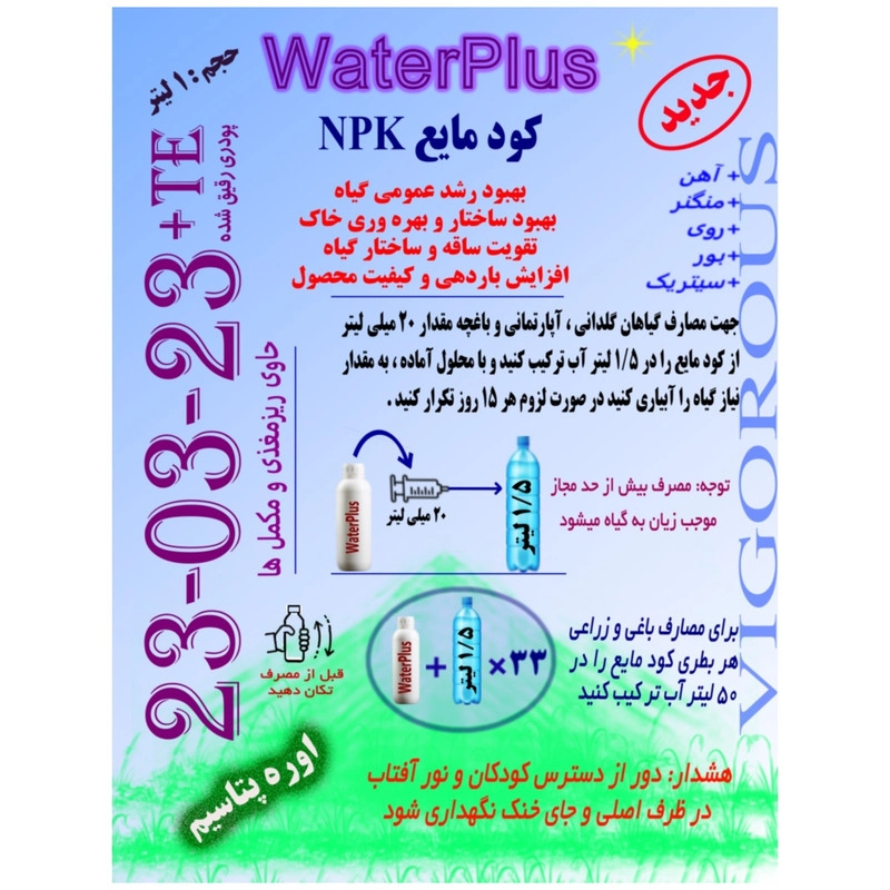 بدون بو , تهیه شده از مواد معدنی , تهیه شده از مواد ارگانیک , تهیه شده از مواد شیمیایی , عملکرد اصلی: تغذیه , عملکرد اصلی: گلدهی