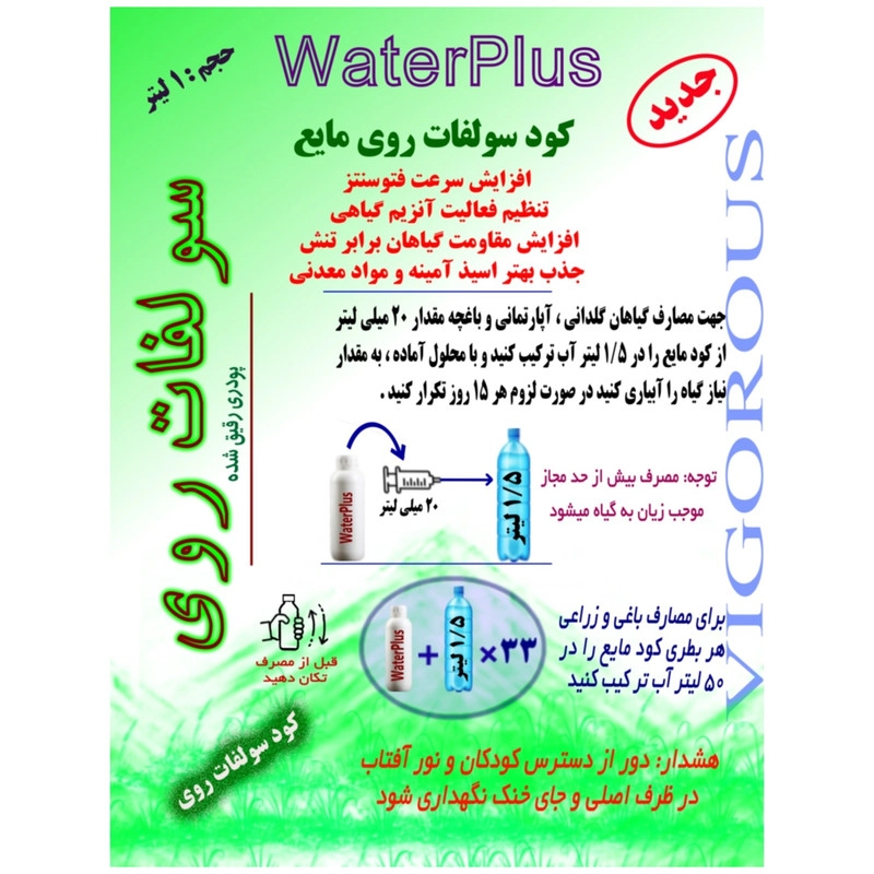 کود مایع سولفات روی واترپلاس مدل VIGOROUS حجم 1 لیتر
