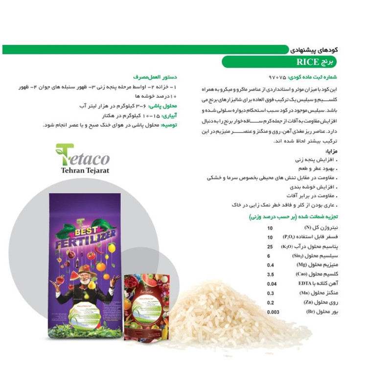 برنج یکی از مهمترین محصولات کشاورزی جهان است که در بسیاری از کشورها به عنوان غذای اصلی مردم محسوب میشود. به منظور بهبود رشد و عملکرد برنجهای خود، میتوانید از کود مخصوص کشت برنج استفاده کنید. این کود شامل ترکیبی از عناصر غذایی مورد نیاز برای رشد و توسعه بهتر گیاه برنج است. از مزایای کود مخصوص کشت برنج میتوان به موارد زیر اشاره کرد: 1. رشد و توسعه بهتر گیاه برنج: با استفاده از کود مخصوص کشت برنج، گیاه برنج شما به مقدار کافی از عناصر غذایی مورد نیاز برای رشد و توسعه دسترسی خواهد داشت. در نتیجه، به رشد و توسعه بهتری خواهد رسید و میتوانید در برداشت آن بهرهمند شوید. 2. افزایش عملکرد برداشت: با استفاده از کود مخصوص کشت برنج، میتوانید به افزایش عملکرد برداشت خود برسید. چرا که برنجهای با استفاده از این کود، محصول با کیفیت و بیشتری تولید خواهند کرد. 3. بهبود کیفیت محصول: با استفاده از کود مخصوص کشت برنج، میتوانید به بهبود کیفیت محصول خود نیز کمک کنید. چرا که این کود شامل ترکیبی از عناصر غذایی مورد نیاز برای تولید برنج با کیفیت بالا است. در نتیجه، با استفاده از کود مخصوص کشت برنج میتوانید به بهترین نتیجه در کشت و برداشت برنج خود برسید. به همین دلیل، توصیه میشود که در هر دوره کشت برنج، از این کود استفاده کنید.
