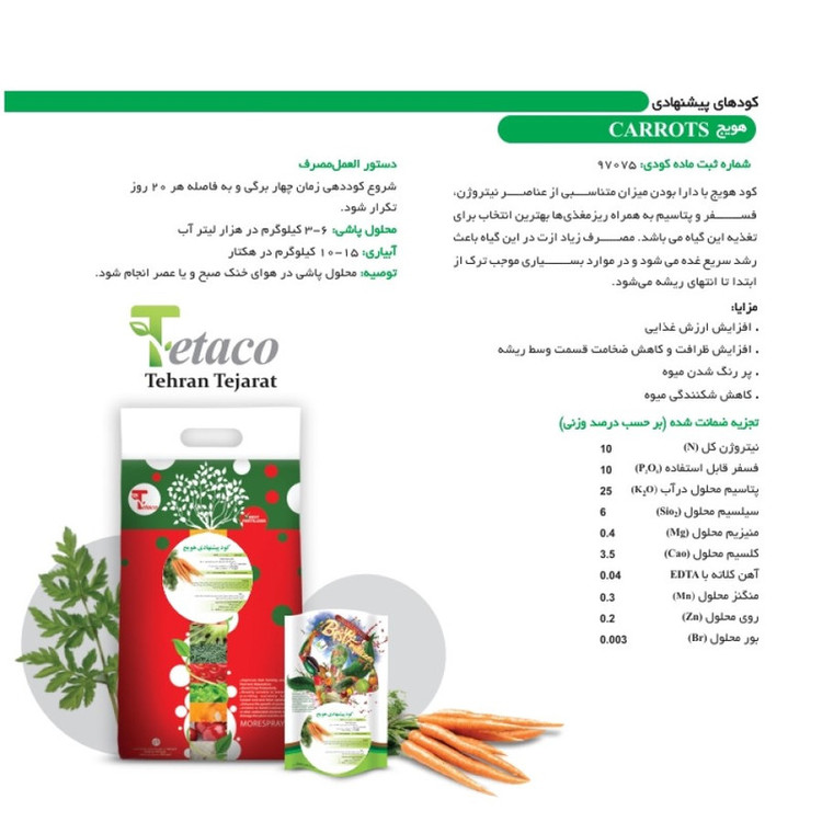 هویج یکی از مهمترین سبزیجاتی است که در باغچهها و مزارع کشت میشود و دارای خواص غذایی بینظیری است. به منظور بهبود رشد و عملکرد هویجهای خود، میتوانید از کود مخصوص کشت هویج استفاده کنید. این کود شامل ترکیبی از عناصر غذایی مورد نیاز برای رشد و توسعه بهتر گیاه هویج است. از مزایای کود مخصوص کشت هویج میتوان به موارد زیر اشاره کرد: 1. رشد و توسعه بهتر گیاه هویج: با استفاده از کود مخصوص کشت هویج، گیاه هویج به مقدار کافی از عناصر غذایی مورد نیاز برای رشد و توسعه دسترسی خواهد داشت. در نتیجه، به رشد و توسعه بهتری خواهد رسید و میتوانید در برداشت آن بهرهمند شوید. 2. افزایش عملکرد برداشت: با استفاده از کود مخصوص کشت هویج، میتوانید به افزایش عملکرد برداشت برسید. چرا که هویجهای با استفاده از این کود، محصول با کیفیت و بیشتری تولید خواهند کرد. 3. بهبود کیفیت محصول: با استفاده از کود مخصوص کشت هویج، میتوانید به بهبود کیفیت محصول نیز کمک کنید. چرا که گیاه هویج به مقدار کافی از عناصر غذایی مورد نیاز دسترسی خواهد داشت و میتوانید به محصولی با کیفیت بالاتر دست یابید. استفاده از کود مخصوص کشت هویج، یکی از بهترین راههایی است که میتوانید به بهبود رشد و عملکرد هویج برسید. بهترین زمان برای استفاده از این کود، پاییز و بهار است. با استفاده از کود مخصوص کشت هویج، میتوانید به باغچه و مزرعه مراقبت بهتری کنید و از برداشت محصول با کیفیت و بیشتری بهرهمند شوید.
