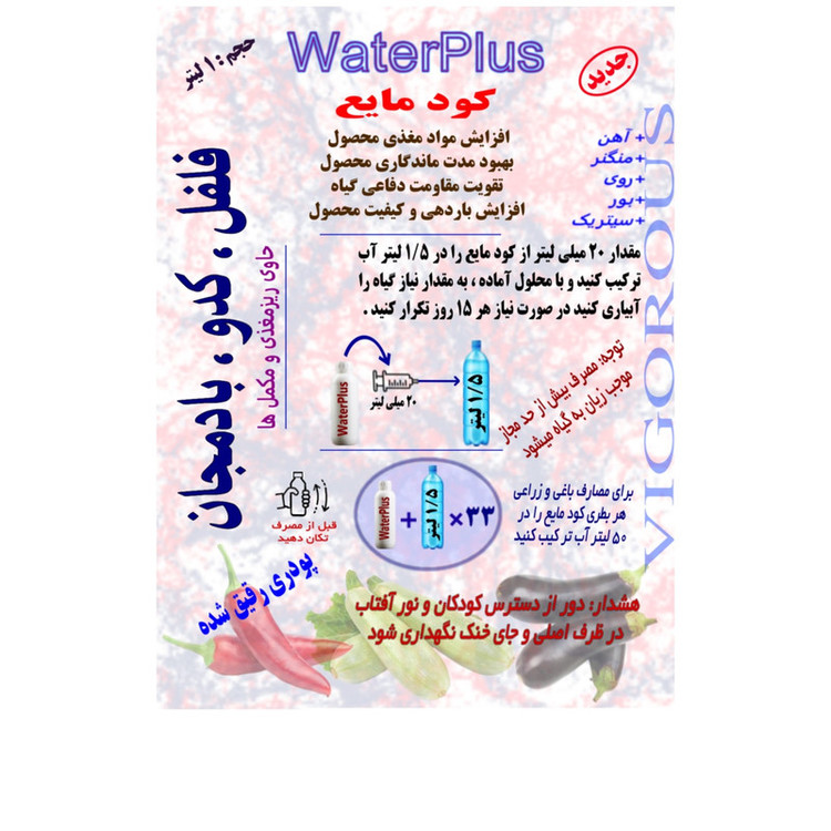 کود مایع فلفل، کدو، بادمجان واترپلاس مدل VIGOROUS حجم 1 لیتر