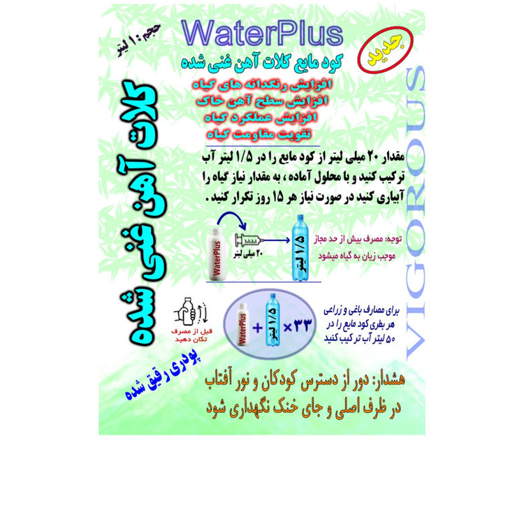 کود مایع کلات آهن غنی شده واترپلاس مدل VIGOROUS حجم 1 لیتر