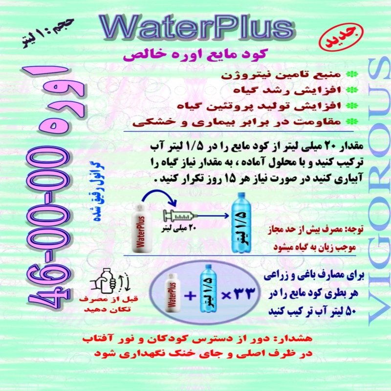 کود مایع اوره خالص واترپلاس مدل VIGOROUS حجم 1 لیتر