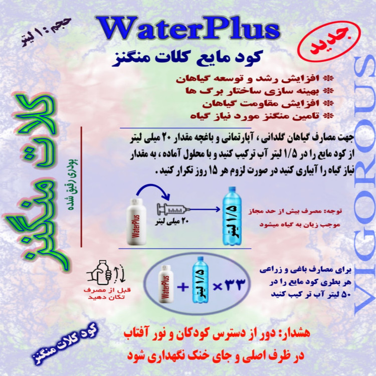 کود کلات منگنز مایع یک نوع کود شیمیایی است که حاوی عنصر منگنز میباشد. این کود برای رفع کمبود منگنز در گیاهان استفاده میشود. منگنز یک عنصر ضروری برای رشد و توسعه گیاهان است و نقش مهمی در متابولیسم آنها دارد. ویژگیهای کود کلات منگنز مایع: حاوی 5 تا 10 درصد منگنز است به صورت مایع و محلول در آب است دارای pH خنثی است برای همه انواع گیاهان از جمله محصولات کشاورزی، باغبانی و چمن کاربرد دارد میتواند به صورت پاشی بر روی برگها یا ریشه گیاه استفاده شود