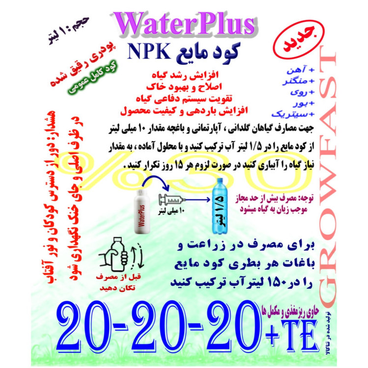 کود مایع NPK 20-20-20+TE واترپلاس مدل GROWFAST حجم 1 لیتر