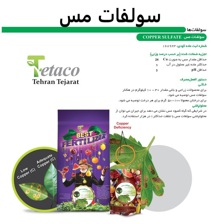 کود سولفات مس یکی از بهترین کودهایی است که به عنوان منبع مس برای گیاهان استفاده میشود. این کود، حاوی سولفات مس است که به عنوان یکی از عناصر غذایی مهم برای گیاهان شناخته شده است. با استفاده از کود سولفات مس، عملکرد و رشد گیاهان بهبود مییابد و به کاهش احتمال بروز بیماریهای گیاهی کمک میکند. همچنین، کود سولفات مس برای بهبود کیفیت محصولات کشاورزی نیز بسیار مفید است. مس، به عنوان یکی از عناصر ضروری در ساختار سلولی گیاهان، برای تولید کلروفیل و تنظیم فعالیت آنزیمهای مختلف بسیار مهم است. اگر شما هم به دنبال بهبود عملکرد و کیفیت محصولات خود هستید، کود سولفات مس بهترین گزینه است. با استفاده از این کود، میتوانید محصولاتی با کیفیت بالاتر و عملکرد بهتری را به دست آورید. پس از استفاده از کود سولفات مس، بهترین نتیجه را با توجه به نوع گیاه، خاک و شرایط اقلیمی منطقه خودتان بدست خواهید آورد. با استفاده از کود سولفات مس، به سلامتی و رشد بهتر گیاهان خود کمک کنید و محصولاتی با کیفیت بالا و با ارزش افزوده بیشتر تولید کنید.