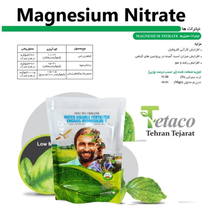 کود نیترات منیزیم، یکی از بهترین کودهای موجود برای تقویت رشد و توسعه گیاهان است. این کود با افزایش مقدار منیزیم و نیتروژن در خاک، بهبود عملکرد گیاهان را فراهم میکند و سبب افزایش عملکرد و کیفیت محصولات میشود. کود نیترات منیزیم، به دلیل داشتن منیزیم و نیتروژن در ترکیب خود، میتواند به بهبود فرآیند فتوسنتز و تولید انرژی در گیاهان کمک کند. همچنین، این کود میتواند برای پیشگیری و درمان برخی بیماریهای گیاهی و همچنین بهبود وضعیت خاک و مقاومت گیاهان در برابر شرایط نامساعد زیستی مفید باشد. با استفاده از کود نیترات منیزیم، میتوانید خاک و گیاهان خود را بهبود بخشید و عملکرد و کیفیت محصولات خود را افزایش دهید. این کود به دلیل داشتن ترکیب مناسبی از منیزیم و نیتروژن، بهبودی قابل توجهی در رشد و توسعه گیاهان شما خواهد داشت. پس از استفاده از این کود، شما میتوانید به محصولات با کیفیت و با عملکرد بالاتری دست پیدا کنید. بهتر است برای استفاده از این کود، دستورالعملهای تهیه و مصرف آن را به دقت دنبال کنید و در صورت نیاز با کشاورزان متخصص یا مشاوران کشاورزی مشورت کنید.