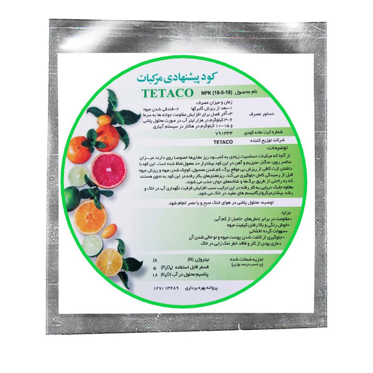 کود تتاکو یک ترکیب مغذی و کامل است که تمامی عناصر ضروری برای رشد سالم درختان مرکبات را فراهم میکند. این کود با فرمولاسیون خاص خود، نیازهای تغذیهای درختان مرکبات را بهصورت متعادل تأمین کرده و به بهبود کیفیت میوهها، افزایش باردهی و تقویت سیستم ریشهای کمک میکند.