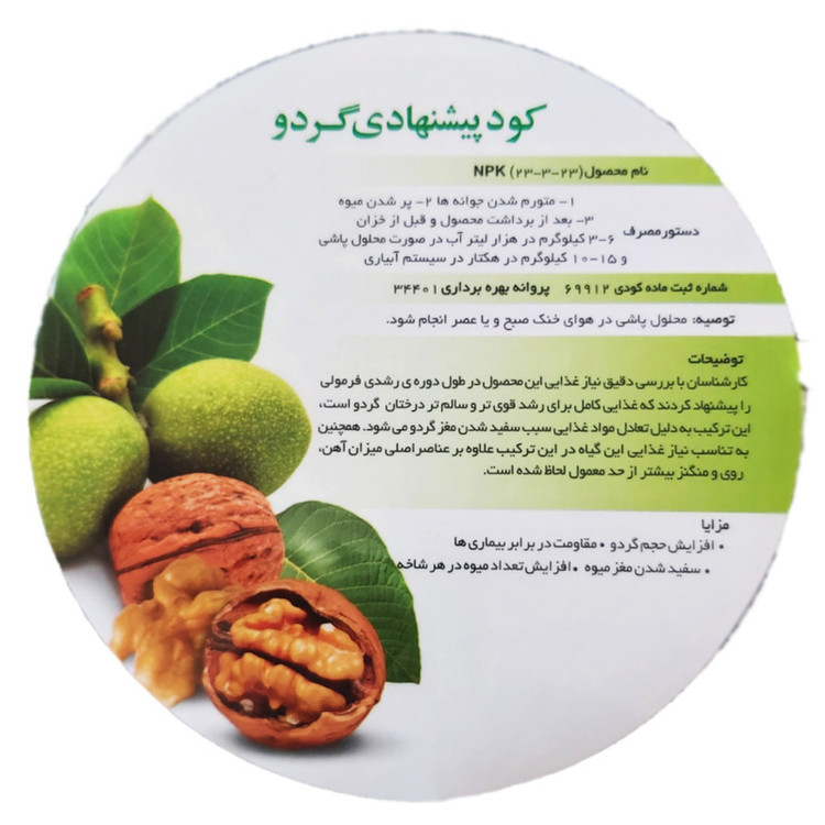 میتوانید از این کود برای درختان گردوی استفاده کنید. کود مخلوطی از عناصر غذایی مهم برای گیاهان است که به صورت شیمیایی تولید میشوند. با استفاده از کود برای درختان گردو، میتوانید به مزایای زیر دست یابید: 1. رشد و توسعه بهتر درخت گردو: با استفاده از کود، درختان شما به مقدار کافی از عناصر غذایی مورد نیاز برای رشد و توسعه دسترسی خواهند داشت. در نتیجه، به رشد و توسعه بهتری خواهید رسید و میتوانید در برداشت آن بهرهمند شوید. 2. افزایش عملکرد برداشت: با استفاده از کود ، میتوانید به افزایش عملکرد برداشت خود برسید. چرا که درختان گردو با استفاده از این کود، محصول با کیفیت و بیشتری تولید خواهند کرد. 3. اطمینان از تأمین عناصر غذایی: با استفاده از کود، میتوانید به اطمینان از تأمین عناصر غذایی مورد نیاز درختان گردوی خود دست یابید. چرا که در کود، عناصر غذایی به صورت دقیق و با نسبت مناسب موجود هستند و در این راه به دست آوردن عملکرد بهتر درختان گردو کمک میکنند. بنابراین، با استفاده از کود برای درختان گردوی ، میتوانید به رشد و توسعه بهتر آنها، بهبود عملکرد برداشت و تأمین عناصر غذایی مورد نیاز شان دست یابید. به همین دلیل، استفاده از کود شیمیایی برای درختان گردویی، یکی از راههای مهم و جدید برای بهبود عملکرد و بهرهوری در کشاورزی است.