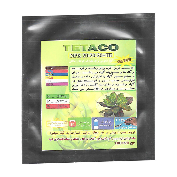 کود NPK 20-20-20+TE تتاکو مناسب گلدان و باغچه وزن 120 گرم
