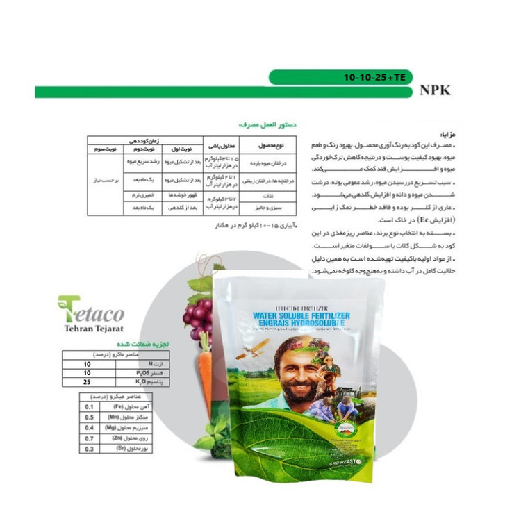با استفاده از کود NPK 10-10-25+TE ، میتوانید باغبانی و زراعت خود را به یک سطح جدید ارتقا دهید. این کود حاوی ترکیبی از عناصر مختلفی است که به گیاهان شما کمک میکند تا بهتر رشد کنند و عملکرد بهتری داشته باشند. عناصری همچون نیتروژن، فسفر و پتاسیم باعث افزایش رشد و تقویت ریشهها و ساقهها میشوند. همچنین، عناصر فوق به گیاهان کمک میکنند تا با تنشهای مختلفی مانند خشکی، سرما و گرما مقابله کنند و بهترین عملکرد را ارائهدهند. کود NPK 10-10-25+TE دارای ترکیبی از عناصر اصلی و عناصر کمیاب میباشد. این عناصر کمیاب شامل عناصری همچون روی، مس، منگنز و بور است که به گیاهان کمک میکنند تا بهترین عملکرد را داشته باشند و از بیماریها و آفات محافظت شوند. با استفاده از کود NPK 10-10-25+TE، میتوانید محصولات با کیفیت و با عملکرد بالاتری بدست آورید. همچنین، این کود به دلیل داشتن فرمولاسیون مناسب و غلظت عناصر بهینه، میتواند به صورت کاملاً محلول در آب استفاده شود. بنابرای، با استفاده از کودNPK 10-10-25+TE، میتوانید هزینههای خود را نیز کاهش دهید، زیرا این کود به دلیل داشتن غلظت عالی عناصر، نیاز به مصرف بیشتری ندارد و با استفاده از مقدار کمتری از آن میتوانید بهترین نتیجه را کسب کنید. پس با استفاده از کود NPK 10-10-25+TE ، باغبانی خود را به سطح بعدی منتقل کنید و محصولات با کیفیت و عملکرد بالاتری بدست آورید.