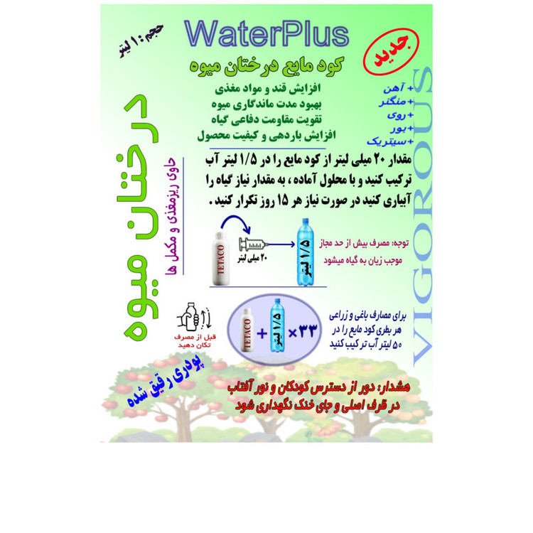 کود مایع درختان میوه، واترپلاس، تغذیه گیاهان، افزایش باردهی، کیفیت میوهها، تقویت سیستم ریشه، مقاومت گیاه، کود تخصصی، باغداری حرفهای، عناصر مغذی، رشد گیاهان