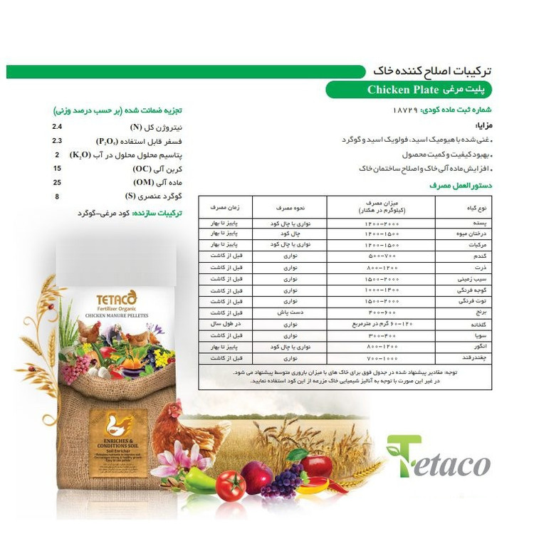 ترکیبات و ویژگیهای کود پلت مرغی غنی شده تتاکو